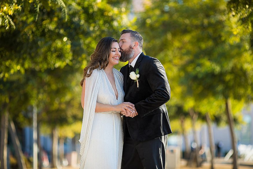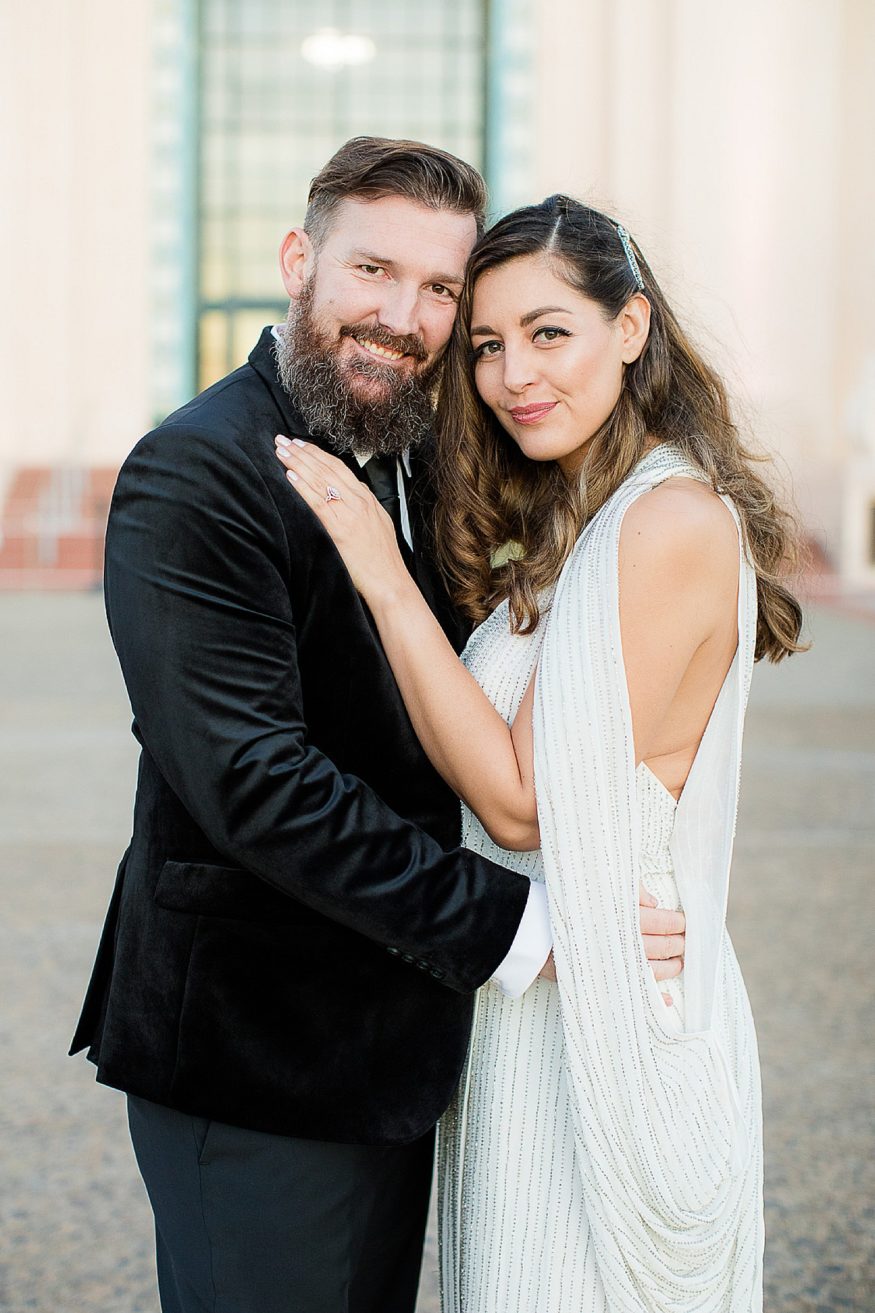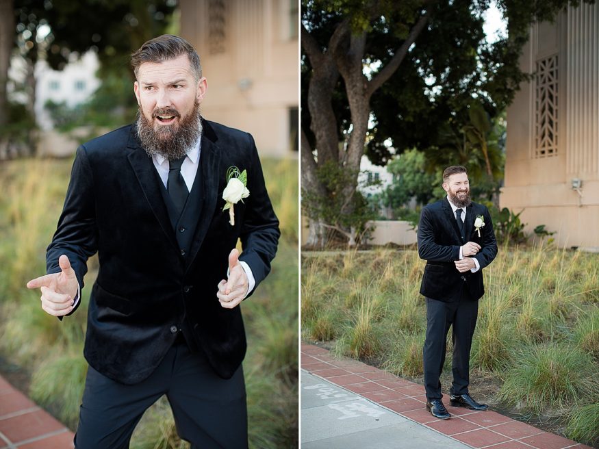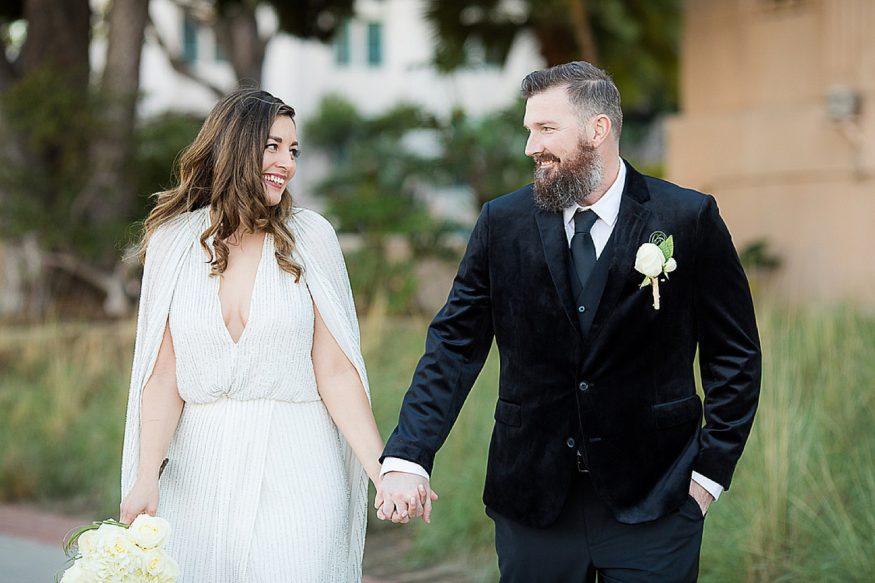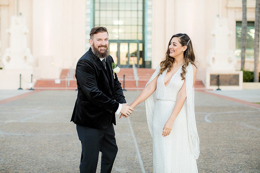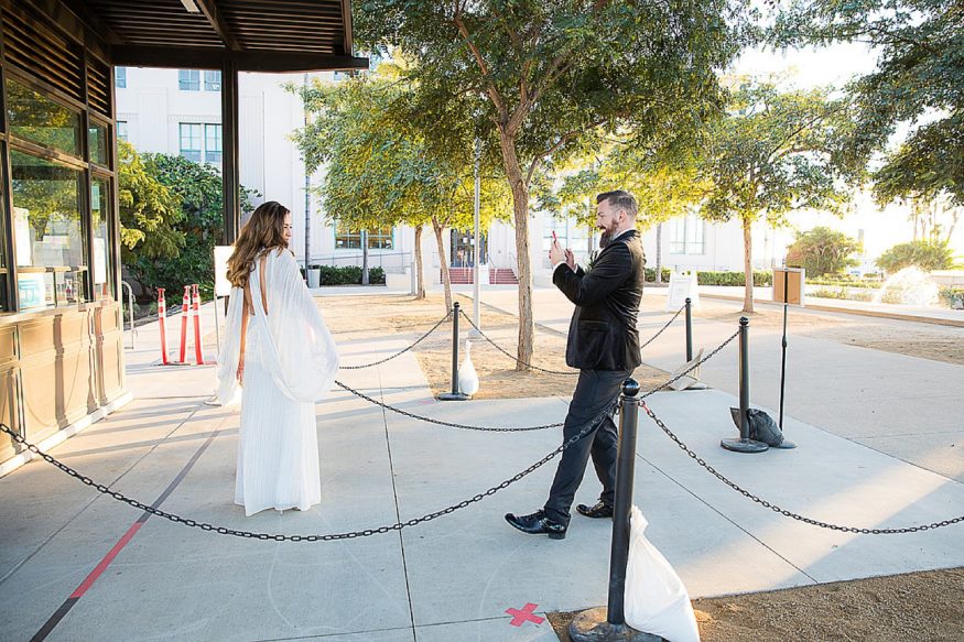 Elva– We met on Match.com, we went on a few dates, but were not sure what we were looking for at the time. We did have a lot of fun, one of our first dates was NYE 2016, I had a Julie Newmar, Catwoman costume, and he had a retro Batman costume. We had the best time in the Gaslamp that day, people were laughing with us or at us, either way, so much laughter. We reconnected 2019 over the summer over pizza. He was living in Chicago at the time, we dated long distance and killed it at Facetime/Doordash/Grubhub dates. We were engaged in November, and Bill was living in San Diego by Thanksgiving.