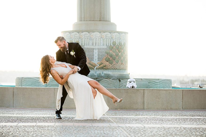 A: Bill – We personalized it by bringing purchasing some very legit Stormtrooper helmets. We love those movies and we are both goofy at heart, so it felt right. I surprised her when we got back home with food and family! I arranged for a small group of her closest family to surprise and celebrate with us, and we also had a great food truck! (SD Taco Tuesday) Plus it was also her birthday, so the celebrations was supreme.