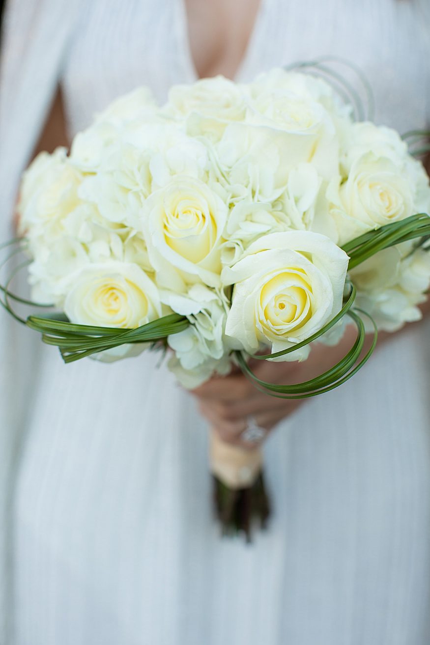 A: Bill – My wife’s wonderful, fantastic mother blessed us by making my boutonniere and my wife’s bouquet by hand! The white roses that my mother-in-law were very important. Not only were they beautiful, they were a surprise, which added emotional value.