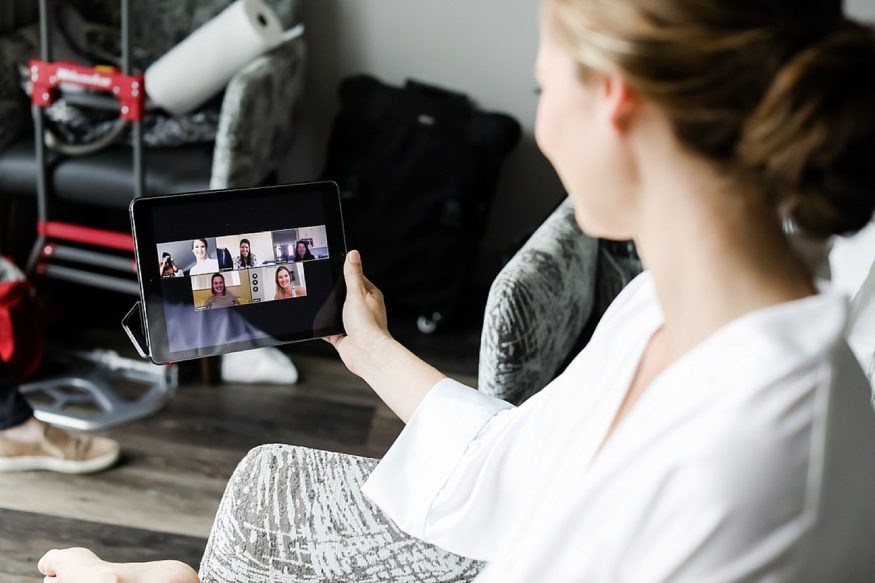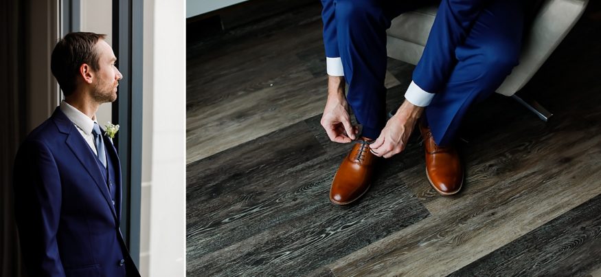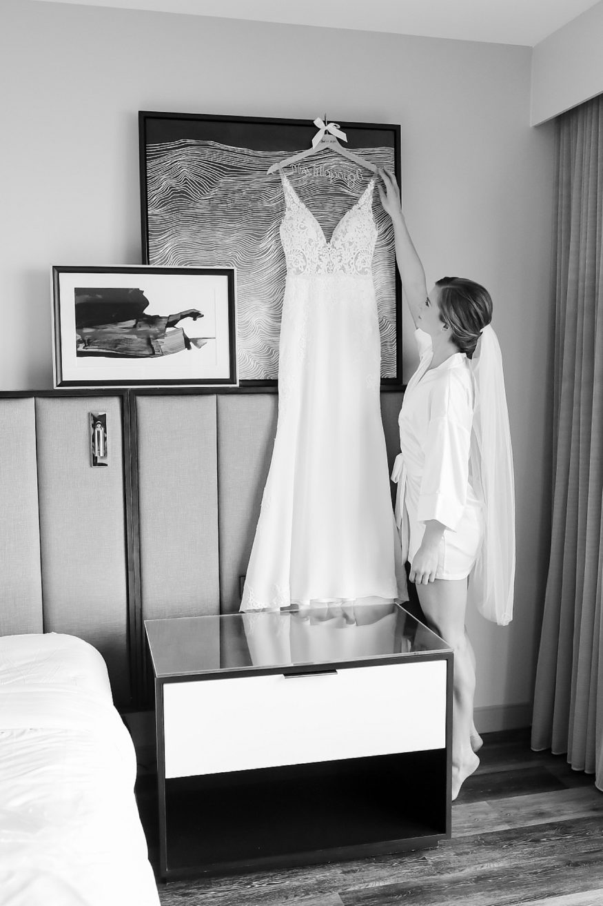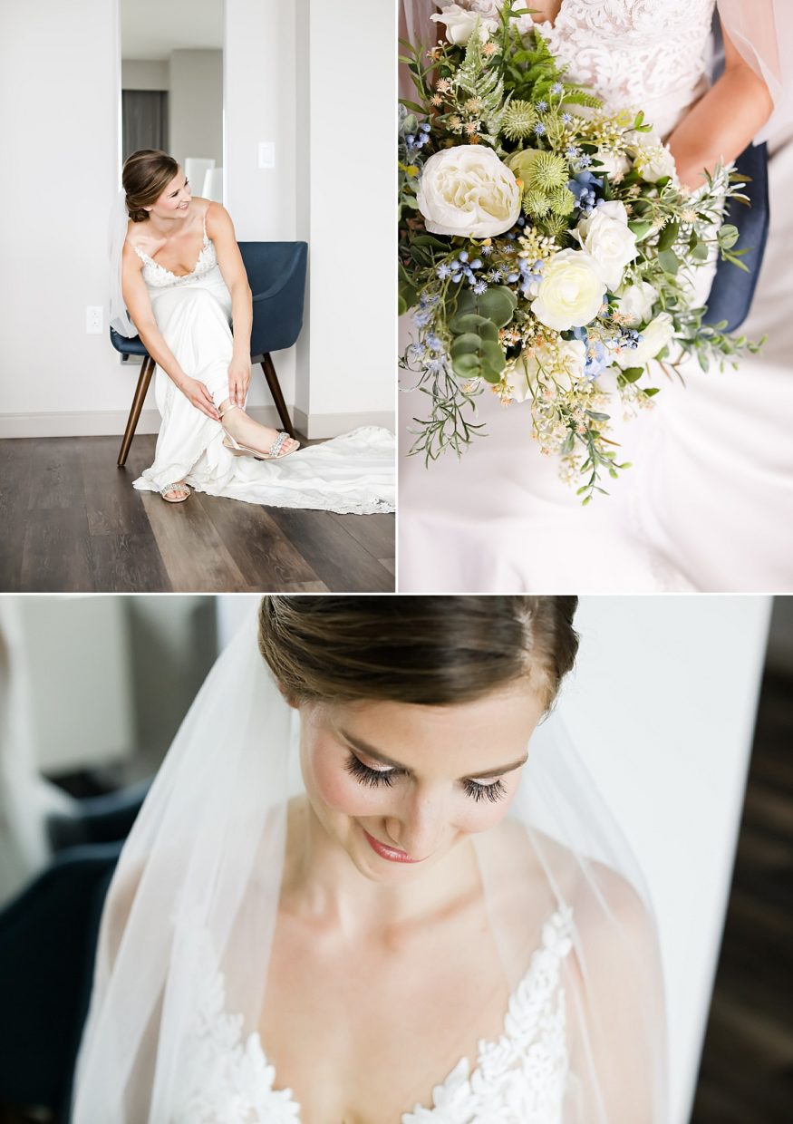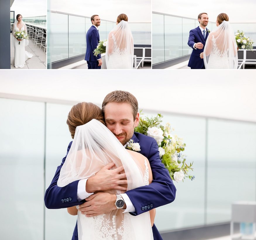 A: Although we couldn’t have guests, we made it a point to FaceTime both of our families throughout the day. My bridal party and my mother video chatted with me while I had my hair and makeup done and Bennet was able to chat with each of his groomsmen before the ceremony. The most meaningful and emotional part of all of this was when we were able to FaceTime my father before I walked down the aisle. There wasn’t a dry eye between us! It was so special for him to be able to see me since he wasn’t able to walk me down the aisle. After the ceremony we celebrated with our families via video chat. Bennet’s family even surprised us by being dressed to the nines and having champagne in hand!