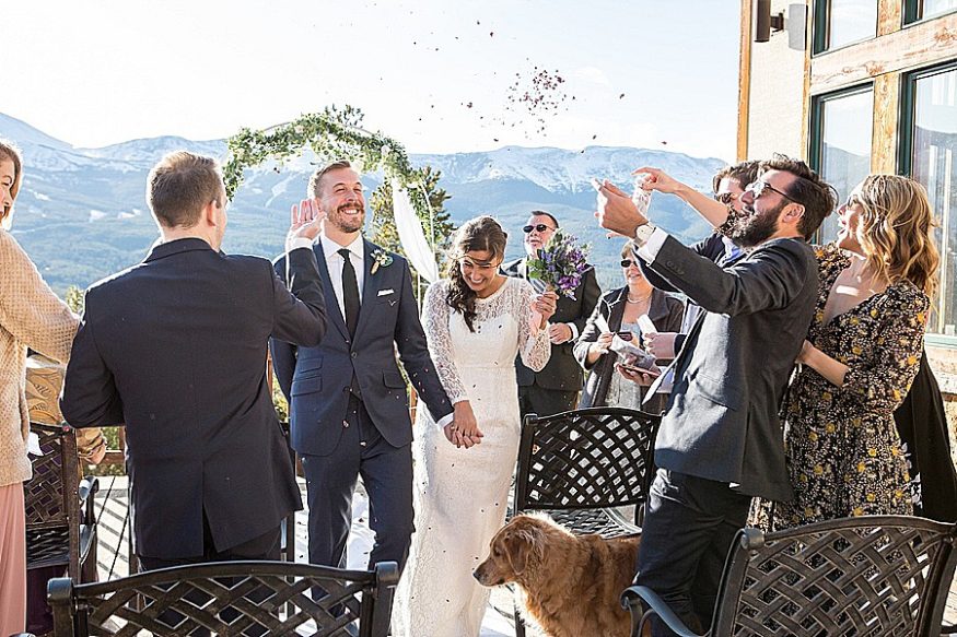 Samantha and Andrew knew that they wanted to get married in the mountains with their families and close friends present. They settled on Breckenridge as it’s a pretty easy drive for their guests flying into Denver. They rented an AirBnb for everyone to stay in and got married on the gorgeous balcony with mountain views and hired a private chef for dinner after. And even their golden retriever Maddison got in on the action!