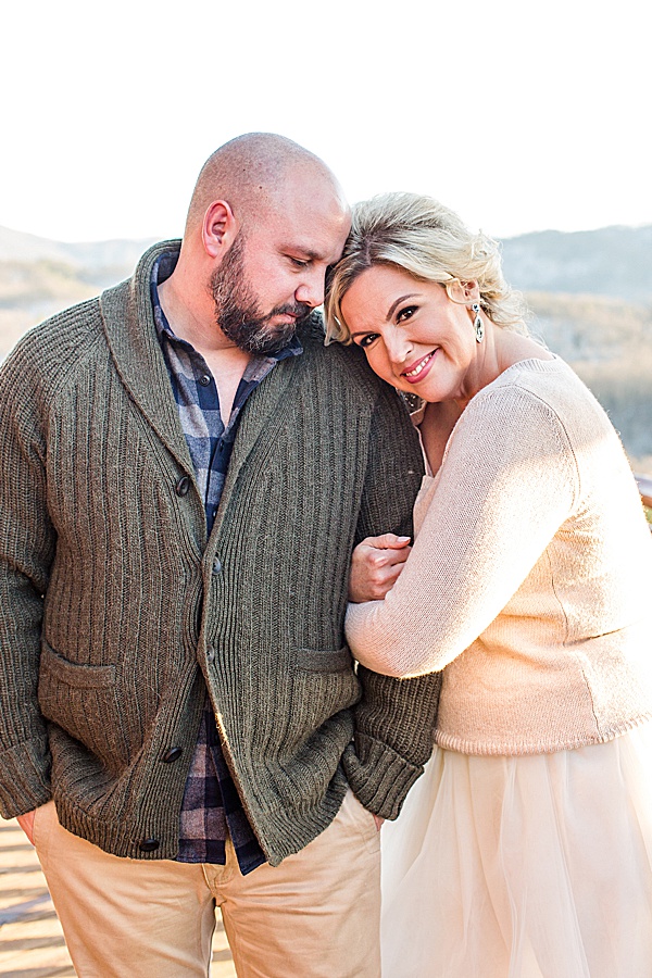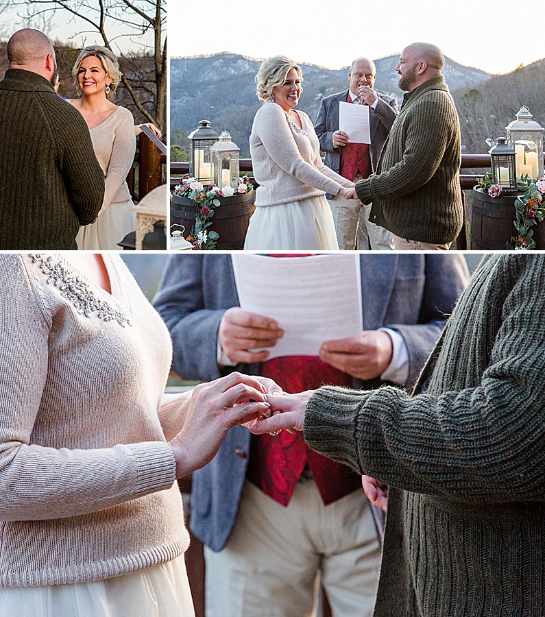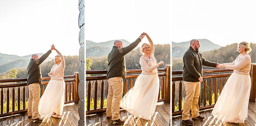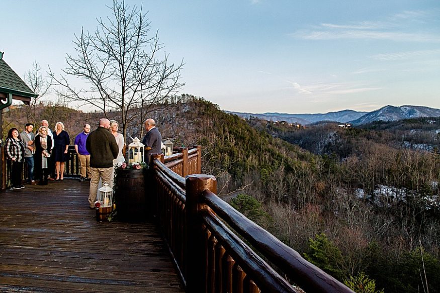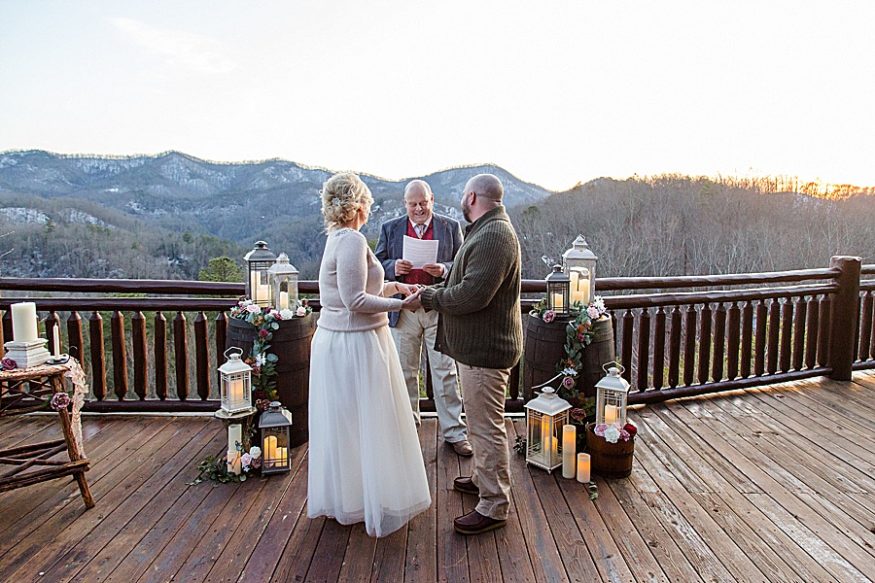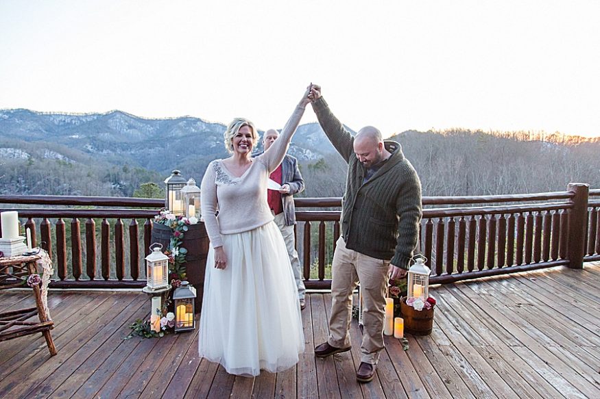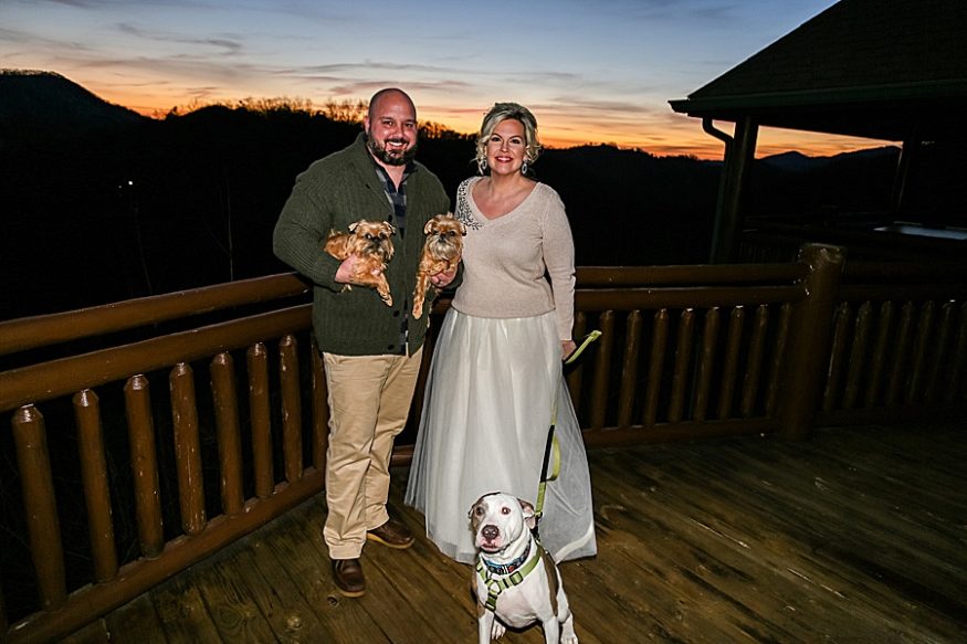 This intimate mountain wedding is the definition of cozy! Nestled on the edge of the Smoky Mountains Melanie and Brad got married on the deck of a cabin surrounded a few family and friends…. and their dogs!
