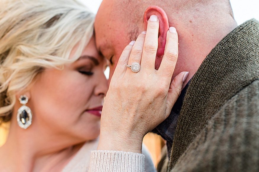As crazy as it sounds, we actually met on Tinder! He was outside my selected 30-mile radius, so we always said it was meant to be! For the proposal he took me to Little River Canyon in Northeast Alabama under the guise of seeing the Fall foliage color change. We hiked down to a beautiful waterfall in a secluded area. I was admiring the scenery and as I turned around he surprised me by being on one knee. It was the perfect day!