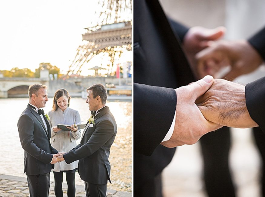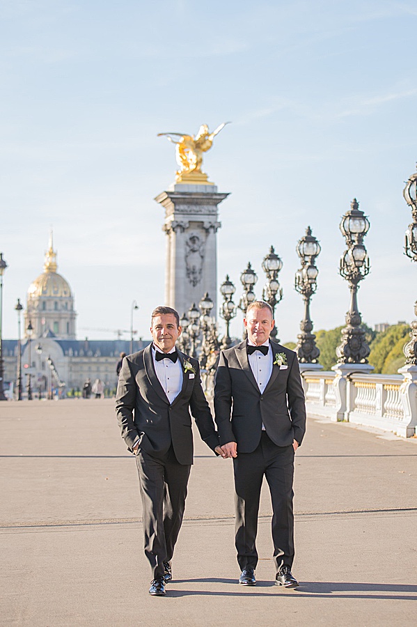 We wanted something very private, very one-on-one. And we knew we wanted to have Paris as the backdrop. I really felt that after all these years together and through the good and bad, this would be our very final and special step of our union together. By choosing Paris as our destination, we were able to travel once again to the city were we took our first vacation together 18 years earlier. Oour favorite part of our wedding day was running around throughout Paris in our tuxedos with the photographer and his team – I loved watching Chris look so happy. We were like kids running through the city of Paris. It was amazing!